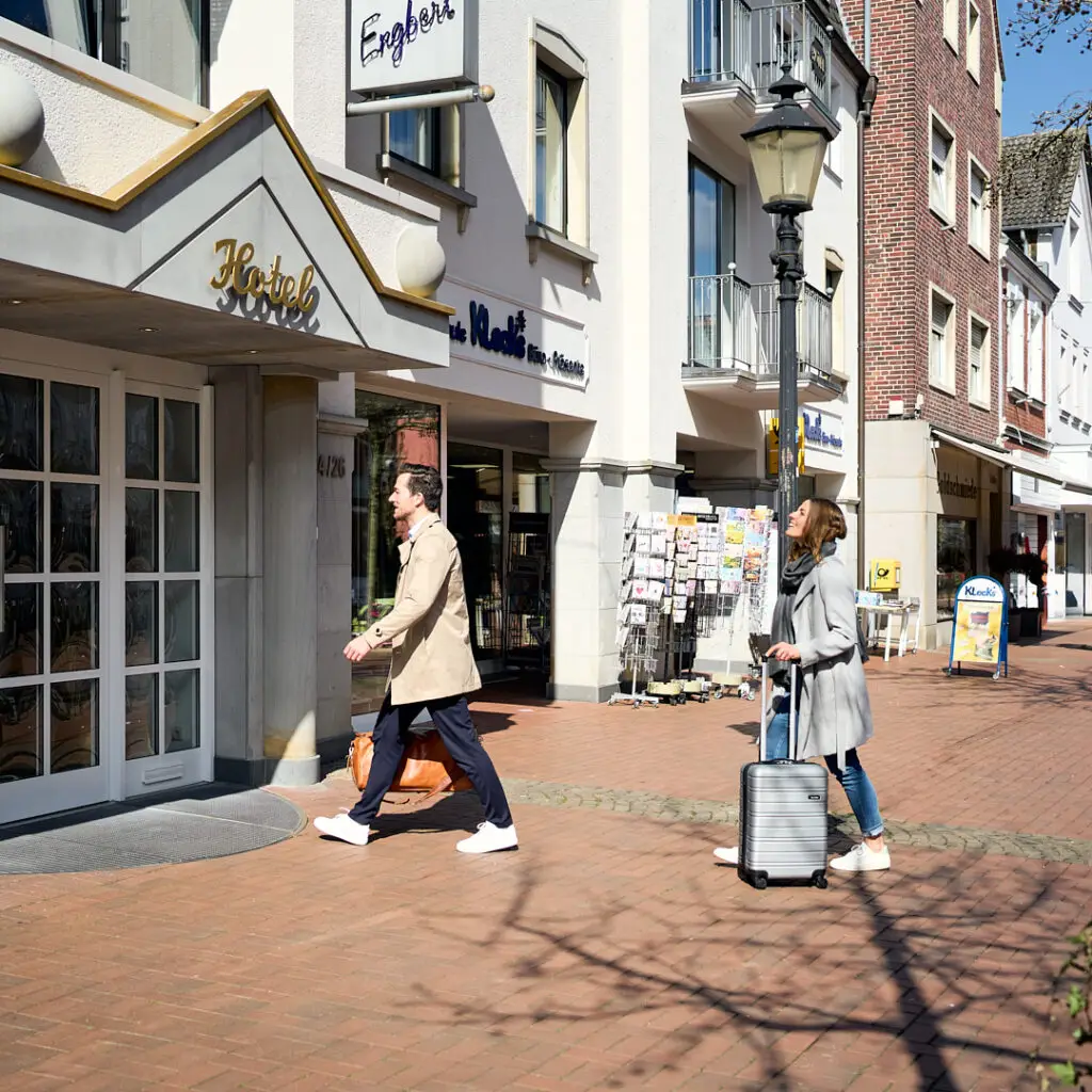 Verlassen Sie den Bahnhof Oelde durch den Haupteingang und folgen Sie der Bahnhofstraße für etwa 300 m. Diese geht nahtlos in die Lange Straße über – bleiben Sie einfach auf dem geraden Weg. Nach insgesamt ca. 500 m erreichen Sie unser Hotel Engbert (Lange Straße 24/26) auf der rechten Seite. Der Fußweg dauert nur etwa 5 Minuten.